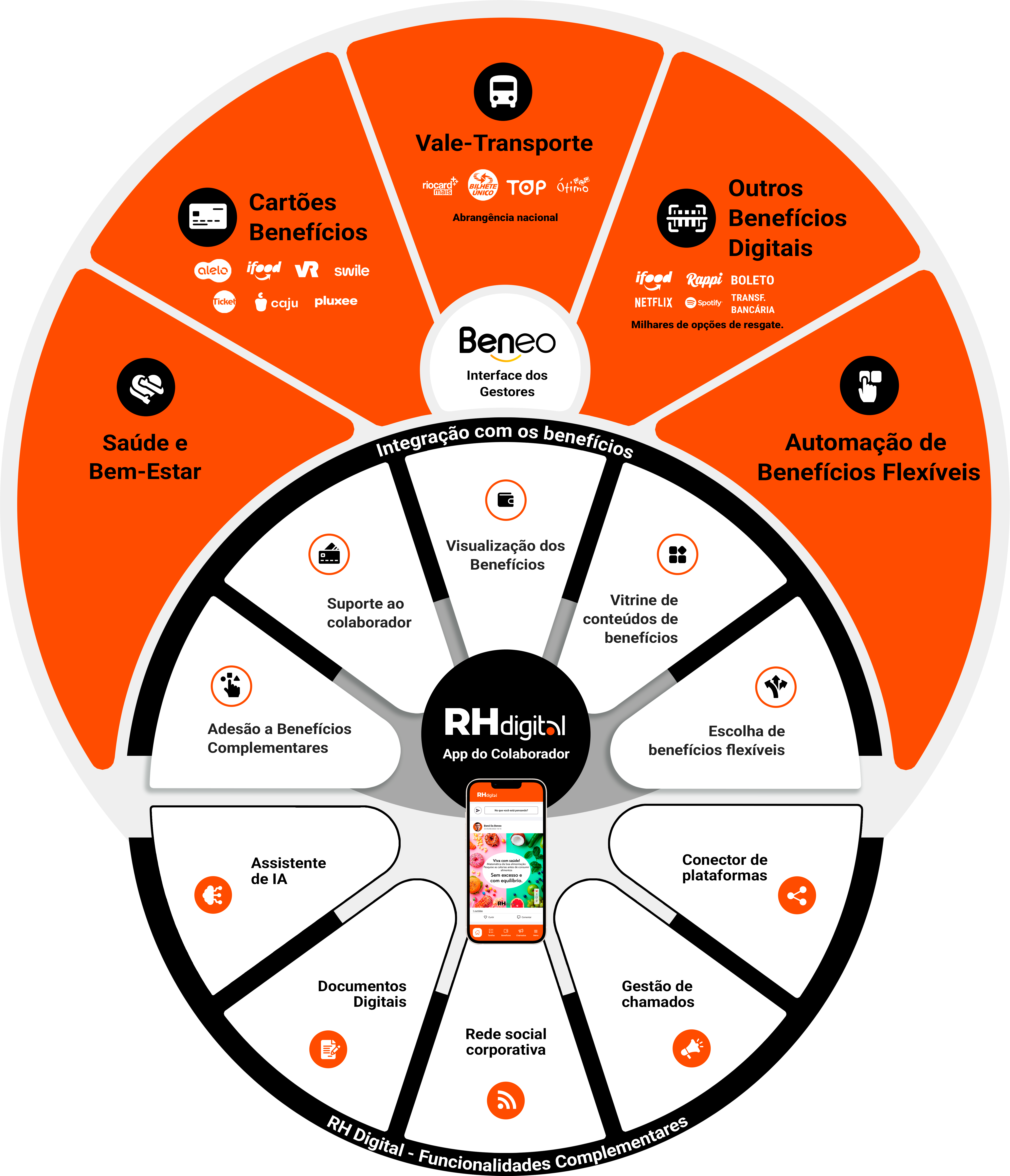 Plataforma de gestão integral de benefícios e conexão com colaboradores. Solução única no mercado para automatizar, de forma centralizada, a contratação, pedidos e flexibilização de todos os benefícios da sua empresa.